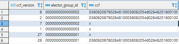 SELECT elector_group_id, ccf_version, ccf,